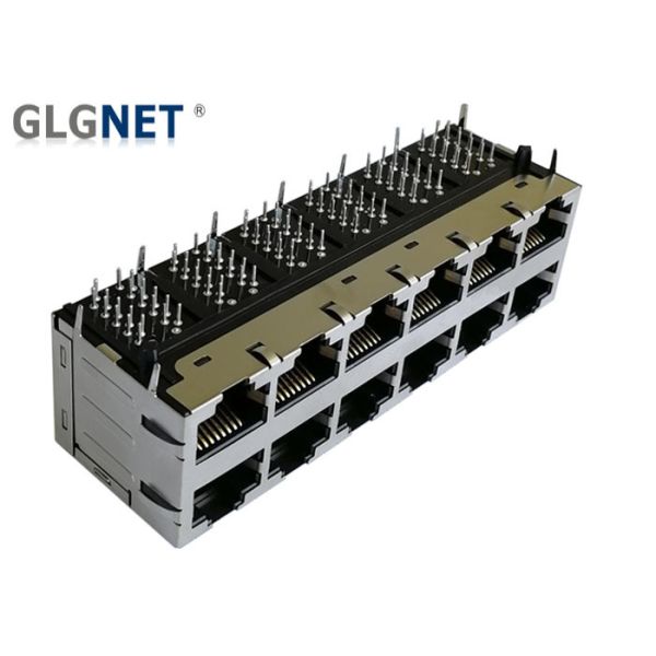 GLGNET RJ45 Modular Jack ( JDHA6T860S ) has 2 x 6 prots, Supports 1000 BASE - T Transmission Speed, it is with Integrated Magnetics, supports Surge Protection;