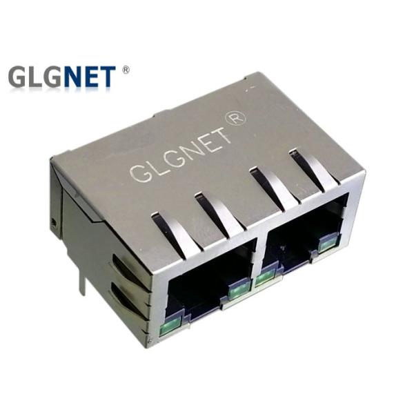 2 Ports 1x2 LAN Rj45 Connector Tab Down RJ45 Jack Copper Alloy Shield With LED Images |