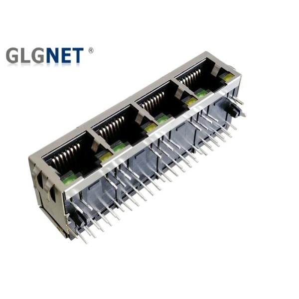 1 X 4 Ports Ganged RJ45 Modular Jack Magnetic Connector Tab Down Green Yellow LED Images |